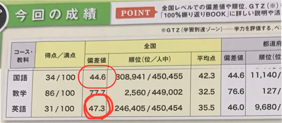 偏差値は上がらず…